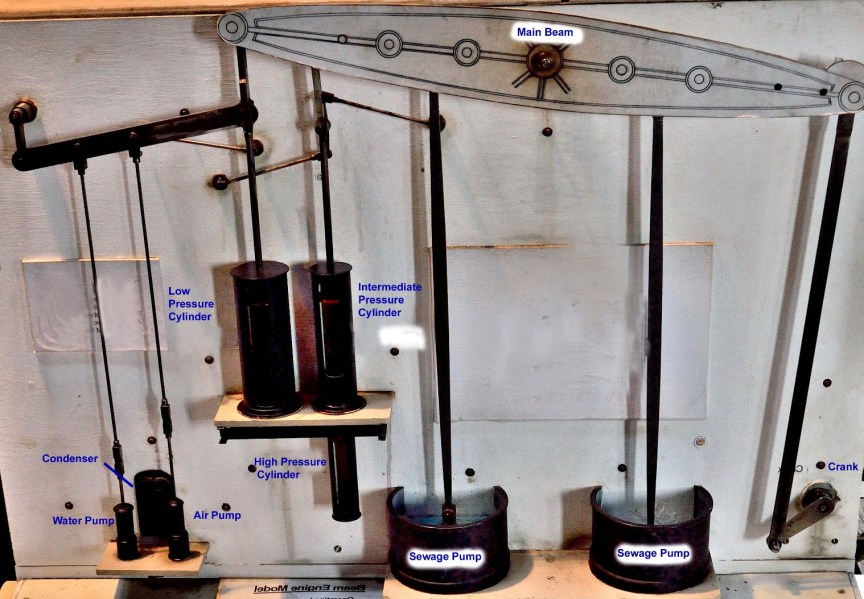 18 pics. The Crossness Pumping Station ⇒ , just east of London, together with 82 miles of brick intercepting sewers, 450 miles of main sewers and 13,000 miles of local sewers were connected and officially opened in 1865. Visiting ⇒ sometimes steaming but not always open so please check the link.