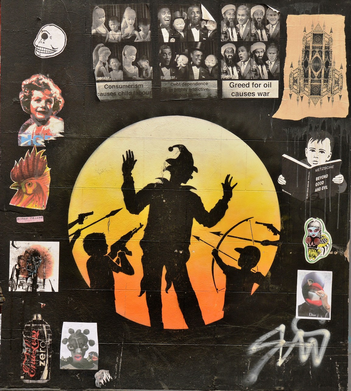 18 pics. There is a lot of street art in the area of Brick Lane (east London). The picture above, by Stik on Princelet St, may not seem very remarkable but it shows an essential truth of this part of London. The picture is self explanatory, its significance is that it is well known and has remained intact for more than three years. And, more street-art:-